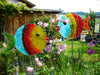 Ein leuchtender Glasfisch, der Farbe und Freude in den Garten bringt. Die freundliche Gestaltung und die strahlenden Farben machen ihn zum fröhlichen Hingucker zwischen Blumen und Beeten.