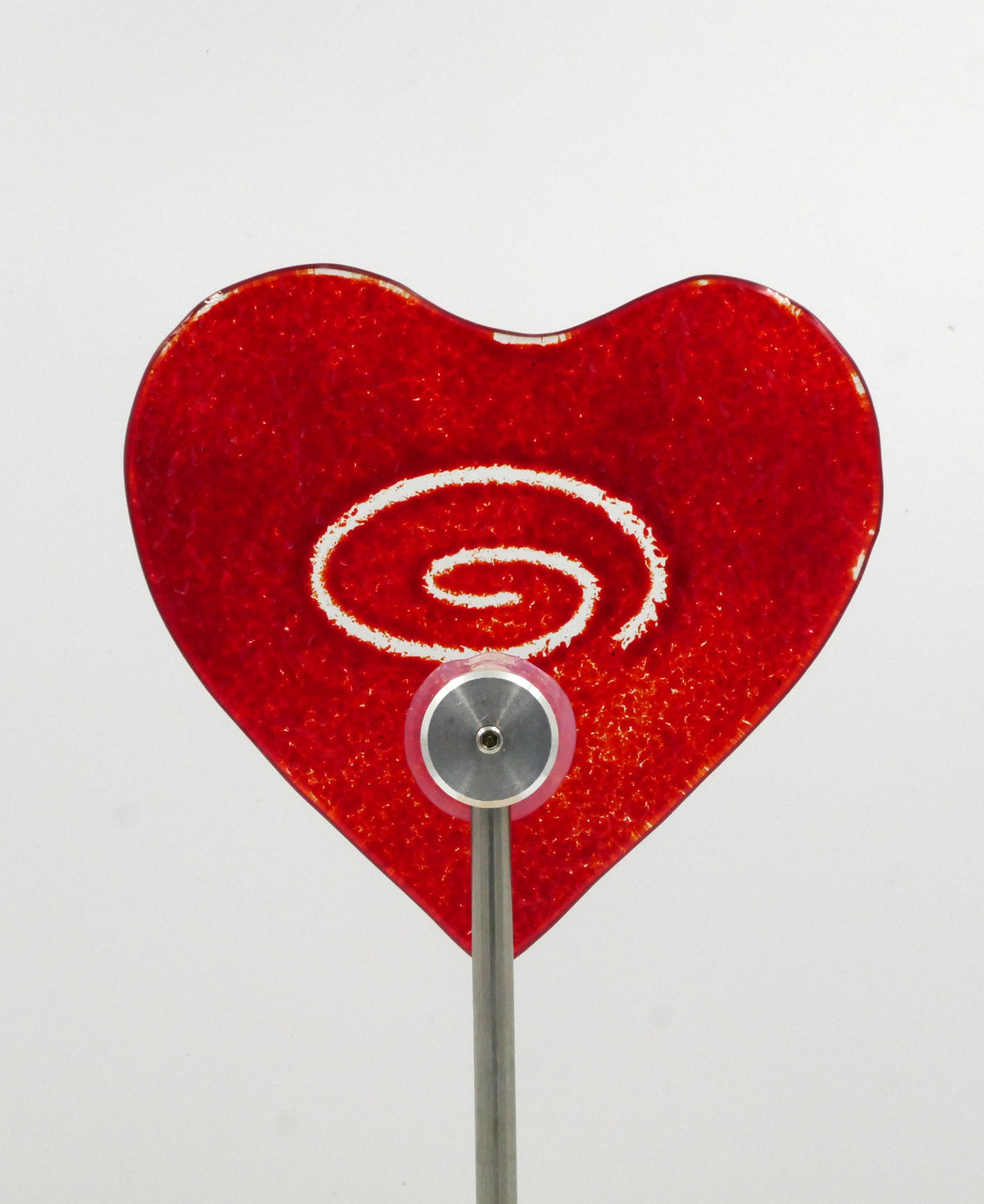 Ein dekoratives Glasherz für Garten, Balkon oder Wohnbereich. Das handgefertigte Herz lässt sich dank des integrierten Spießes leicht in Erde, Blumentöpfe oder Arrangements stecken und setzt edle, farbenfrohe Akzente. Ideal als Geschenk oder liebevolle Dekoration für jede Jahreszeit.