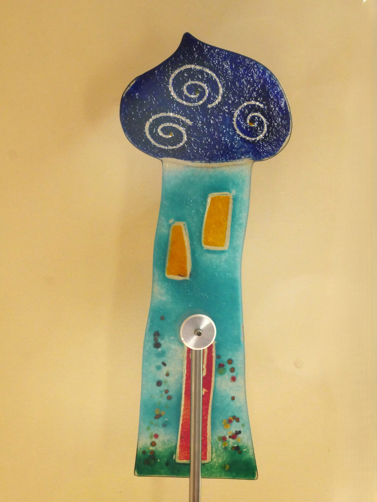 Die Farbe bleibt dauerhaft erhalten – dank der Fusingtechnik. Dabei wird transparentes Glas zugeschnitten, anschließend mit kompatiblem Farbglaspulver bestreut und in einem Brennvorgang verschmolzen. Durch dieses Verfahren entsteht die Farbe im Glas selbst, wodurch sie nicht verblassen oder abblättern kann.