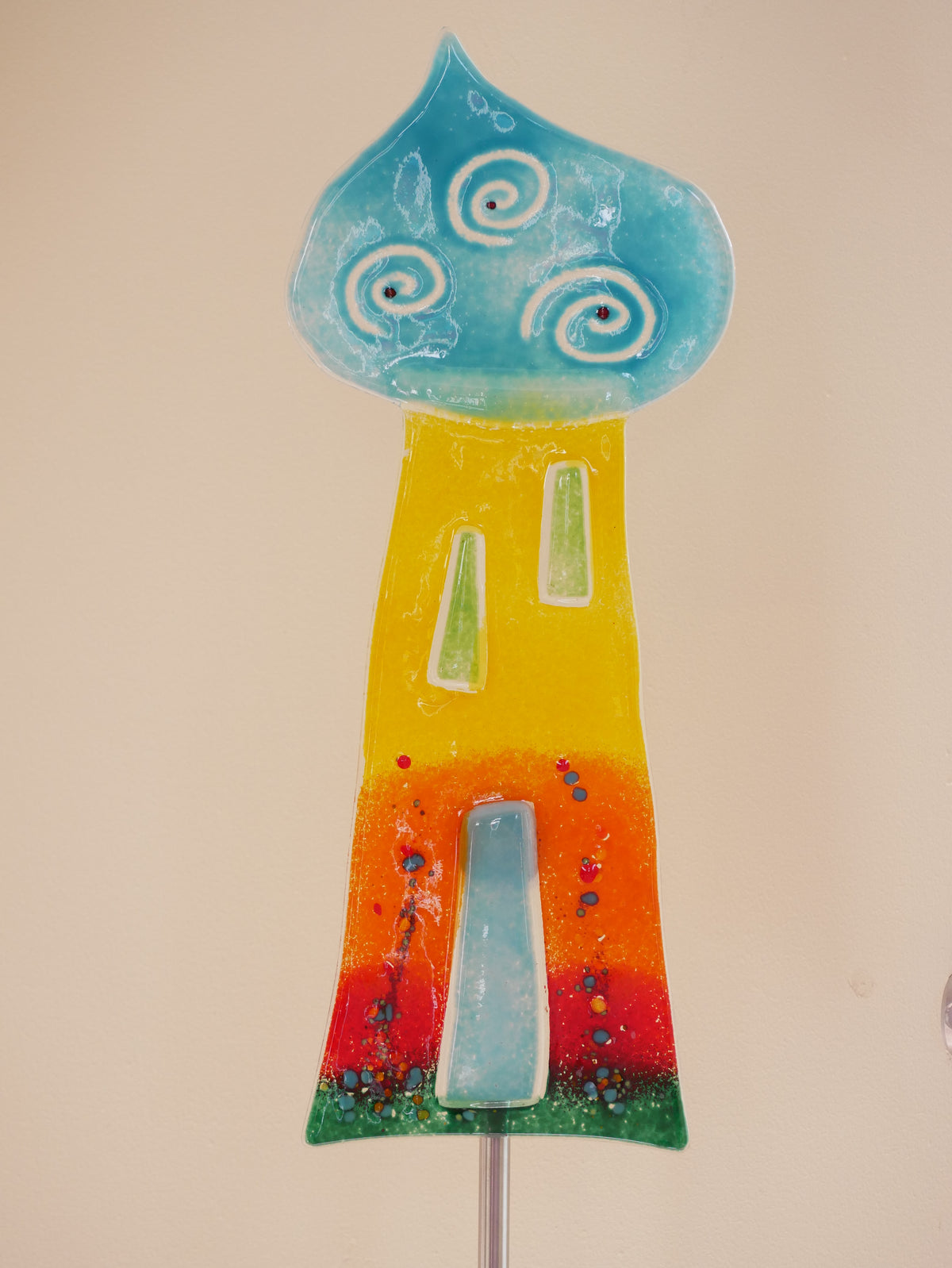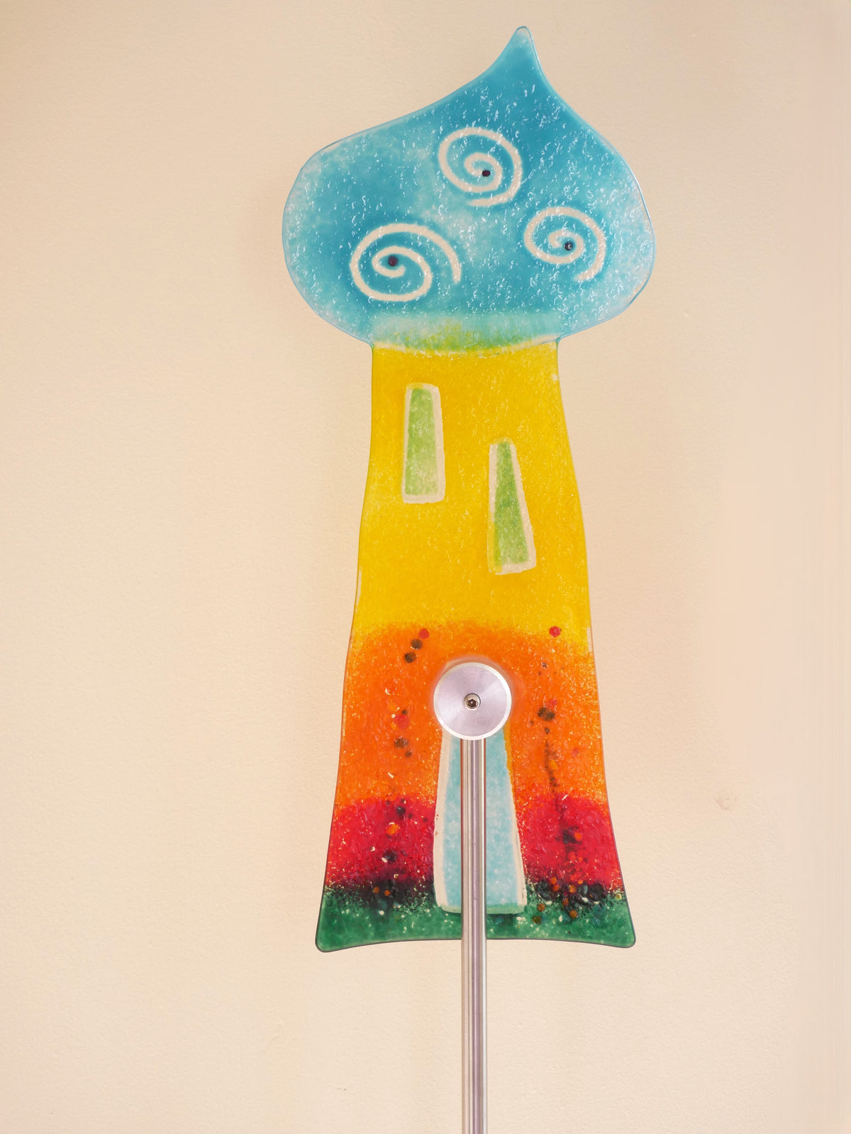 Dieses farbenfrohe Glashaus aus hochwertigem, handgearbeitetem Glas bringt lebendige Lichtspiele in deinen Garten. Auf einen Stab gesteckt setzt es zwischen Blumen und Beeten dekorative Akzente und wird schnell zu einem besonderen Blickfang. Perfekt als liebevolles Geschenk oder stilvolle Gartendekoration.